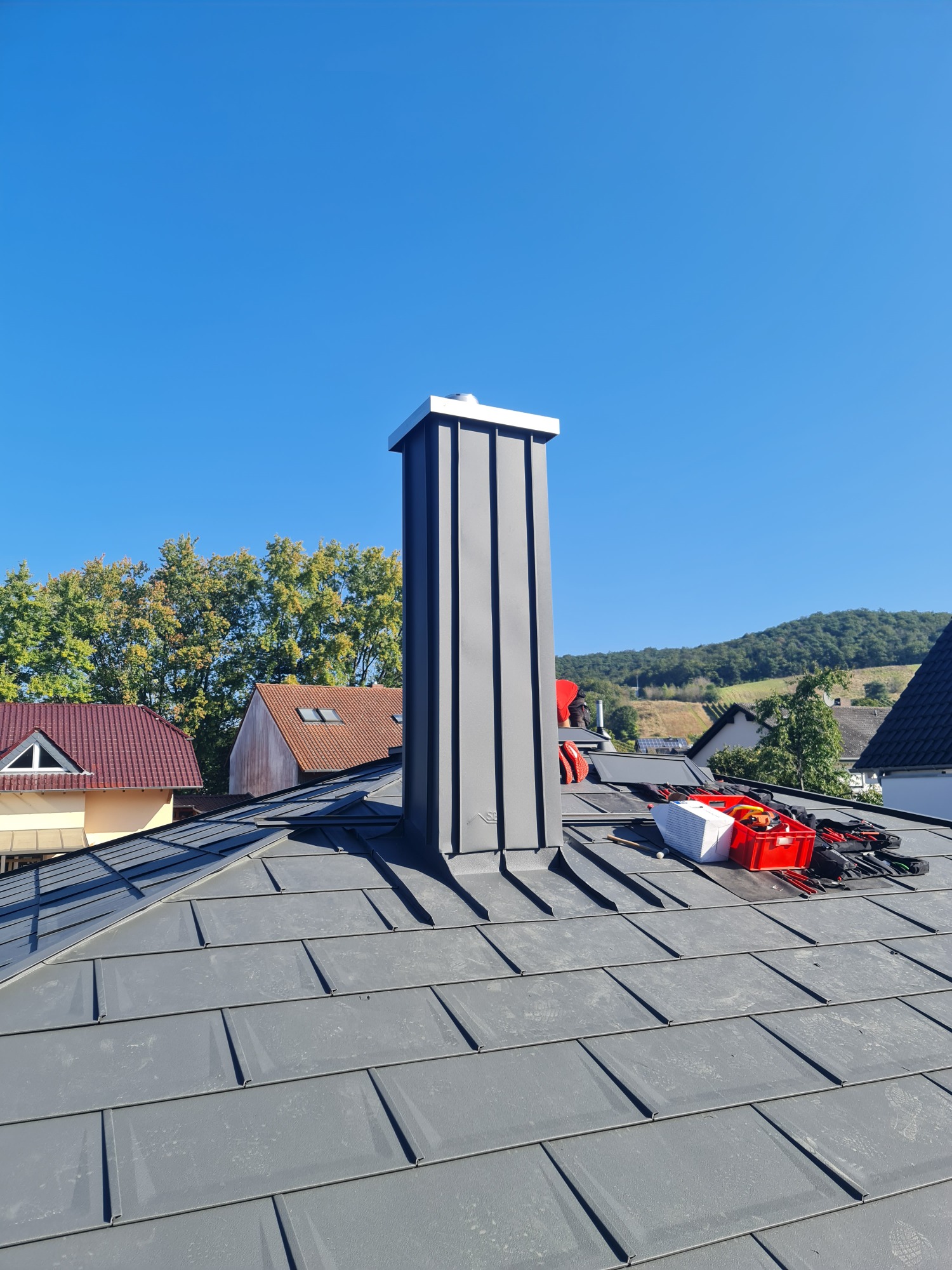Ein Blechdach steht für Langlebigkeit, Widerstandsfähigkeit und moderne Optik. Es trotzt problemlos starken Witterungseinflüssen wie Regen, Schnee und Hitze und ist dabei deutlich wartungsärmer als viele andere Dacheindeckungen. Gerade bei starker Vegetation bietet Blech einen klaren Vorteil, da sich Moos und Algen deutlich schwerer festsetzen können.