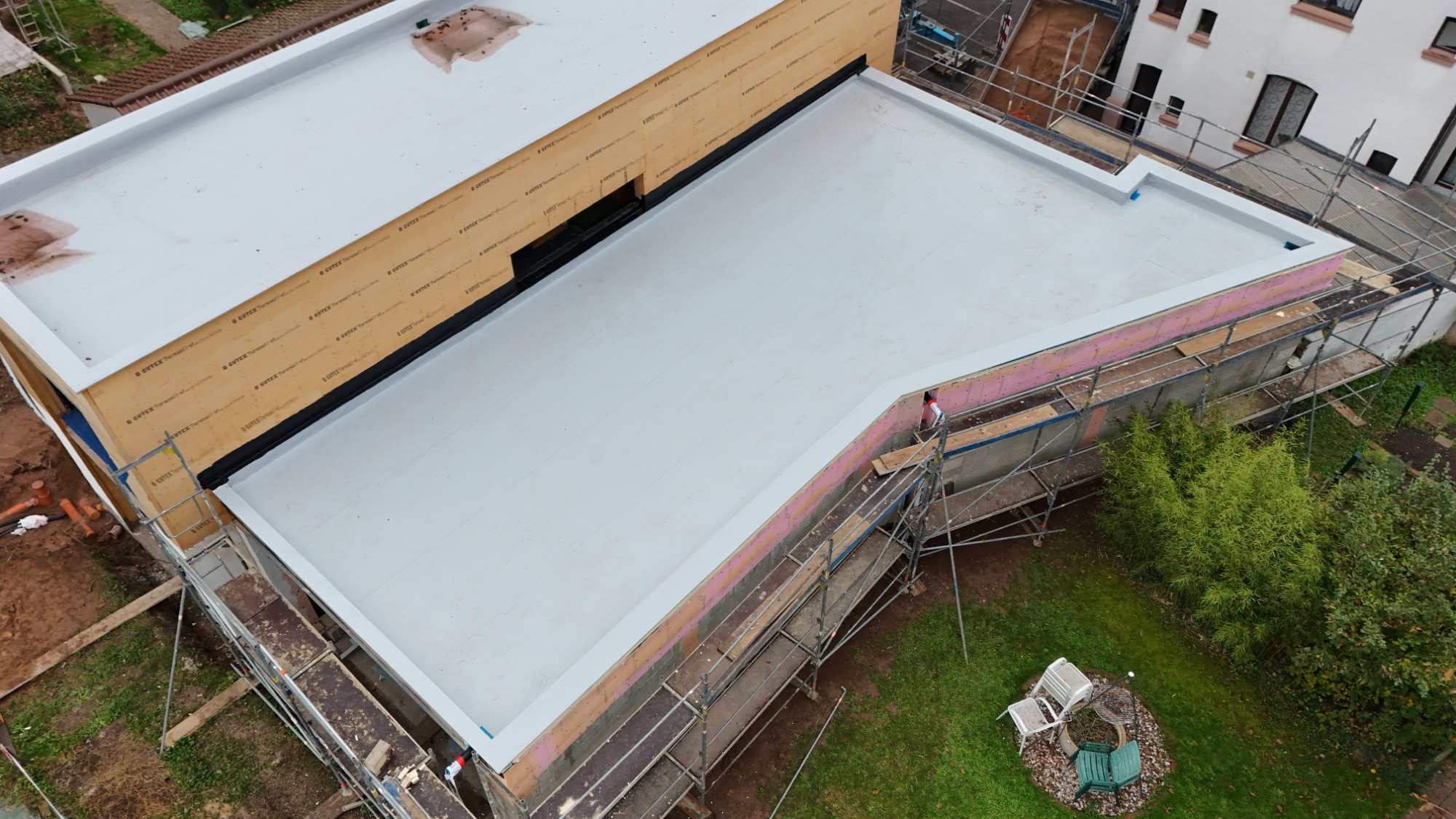 Ein Flachdach bietet eine moderne Optik und eröffnet gleichzeitig vielseitige Nutzungsmöglichkeiten. Ob als Dachterrasse, Gründach oder für die Installation einer Photovoltaikanlage – ein Flachdach schafft zusätzlichen Raum, der aktiv genutzt werden kann.